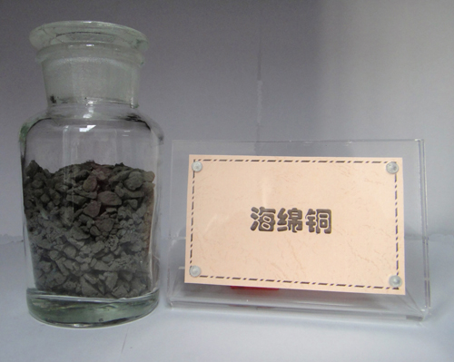 海綿銅,是指海綿狀的銅,可用于提煉金屬銅及制做辛酸亞銅等原料,用相對密度為8波美度的稀硫酸將礦渣浸泡2-3小時,把生成的銅溶液用泵送到反應柱中,加入鐵屑與之反應成海綿銅。我公司的年產海綿銅100余噸,含銅品位在50%以上。